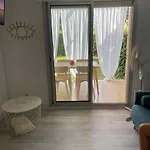 Offrant une vue sur le jardin, Appartement rénové avec piscine, plage 2mns à pied dispose d'une terrasse équipé de la climatisation. Pour plus de confort, une douche sont disponibles à cet établissement. Un sèche-cheveux et des draps de bain sont également présents dans la salle de bain.